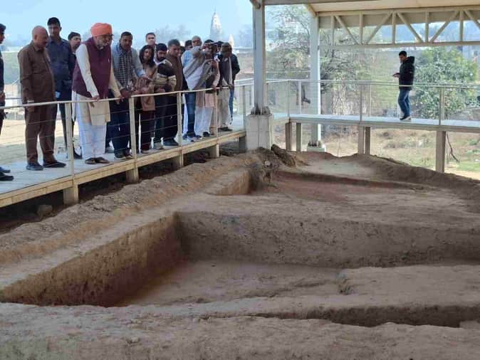 राखीगढ़ी में साइट नंबर तीन का दौरा करते कृषि मंत्री श्याम सिंह राणा।