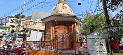 चंद्र ग्रहण के चलते पुष्पा कंपलेक्स शनि मंदिर के बंद पड़े कपाट।