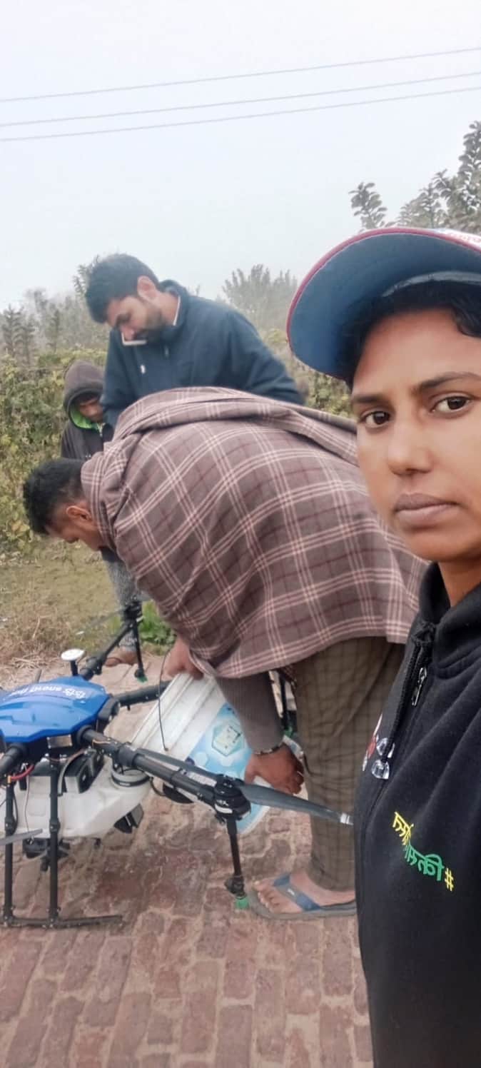 सीमा के ड्रोन में रसायन भरते ग्रामीण।