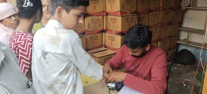 जहाजपुल के पास स्थित राशन डिपो संचालक बायोमीट्रिक लेते हुए।