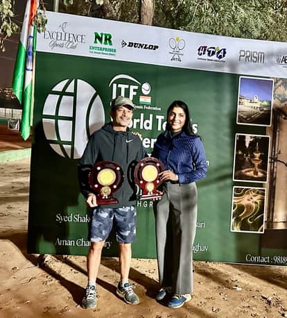 हिसार। विद्युत नगर निवासी योगेश कोहली ने गुरुग्राम में आयोजित एमटी-400 सीनियर टेनिस प्रतियोगिता में शानदार प्रदर्शन करते हुए सिंगल और डबल्स दोनों वर्गों में विजेता खिताब अपने नाम कर लिया। इस उपलब्धि के साथ उन्होंने अपनी वर्ल्ड रैंकिंग में भी उल्लेखनीय बढ़ोतरी की है। प्रतियोगिता के समापन पर गुरुग्राम की सीटीएम सपना यादव ने योगेश कोहली को ट्रॉफी प्रदान कर सम्मानित किया।