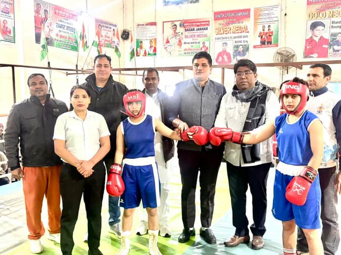 12jjrp28- झज्जर। मुक्केबाजी की प्रतियोगिता शुरू कराते मुख्यातिथि विकास वाल्मीकि। स्रोत- कोच