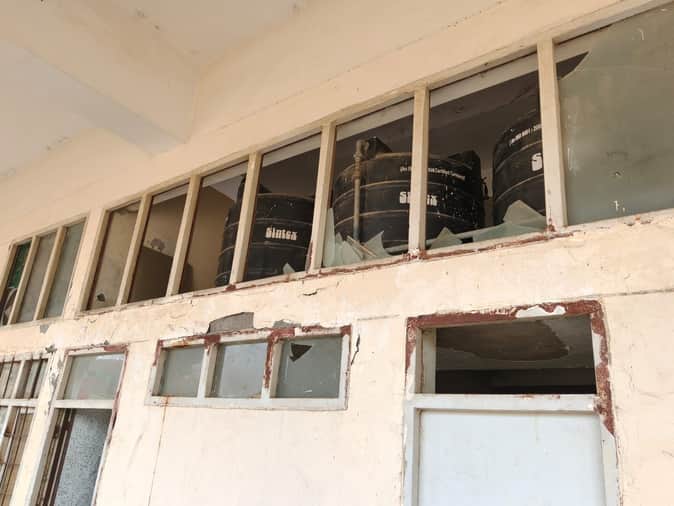 फोटो-51: डॉ.भीमराव अंबडेकर स्टेडियम में टूटे पड़े शीशे और जंग खाए दरवाजे। संवाद
