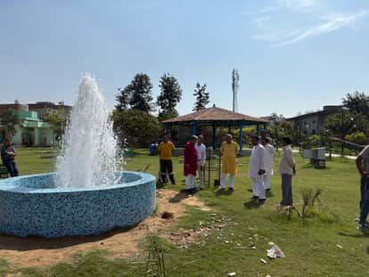 10jjrp08- राव मंगलीराम पार्क में फव्वारें के पानी के बाहर गिरने को लेकर निर्देश देते नप चेयरमैन