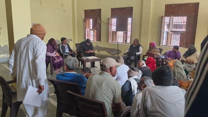 फोटो नंबर 71: गांव की ग्राम सभा में मौजूद ग्रामीण। संवाद