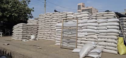 फोटो 99: बहादुरगढ़ मंडी में कट्टों में भरकर रखा गया गेहूं। संवाद