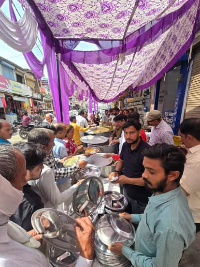 26jjrp14- झज्जर। भंडारे में प्रसाद ग्रहण करते श्रद्धालु। संवाद