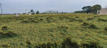 बारिश से अधिकतम तापमान में 10 डिग्री की गिरावट दर्ज की गई है। बुधवार रात से रुक-रुककर बारिश हो रही है। तेज हवा और बारिश के कारण खड़ी फसल खेतों में गिर गई है। फसल गिरने से उत्पादन पर असर पड़ सकता है और कटाई में भी दिक्कतें आएंगी।