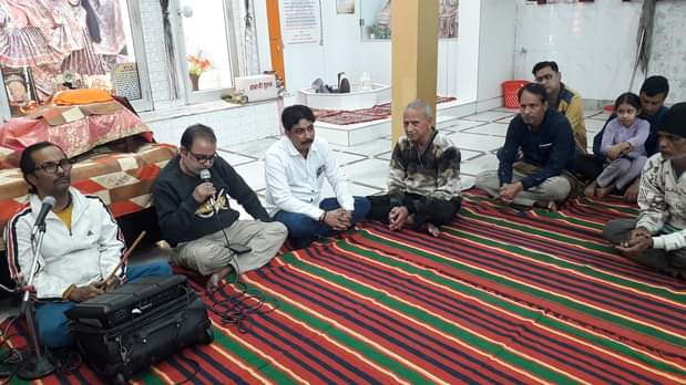 12jjrp06- श्री कांशी गिरि मंदिर में आयोजित भजन संध्या में शामिल श्रद्धालु। स्रोत-मंदिर समिति