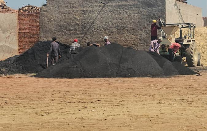 फोटो नंबर 75: ईंट भट्ठा पर मजदूरों के ईंधन के लिए रखा कोयला। संवाद
