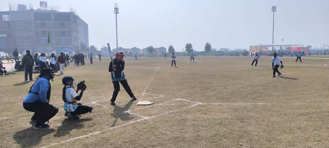 11jjrp19- झज्जर। सॉफ्टबॉल का मैच खेलते खिलाड़ी। स्रोत- कोच
