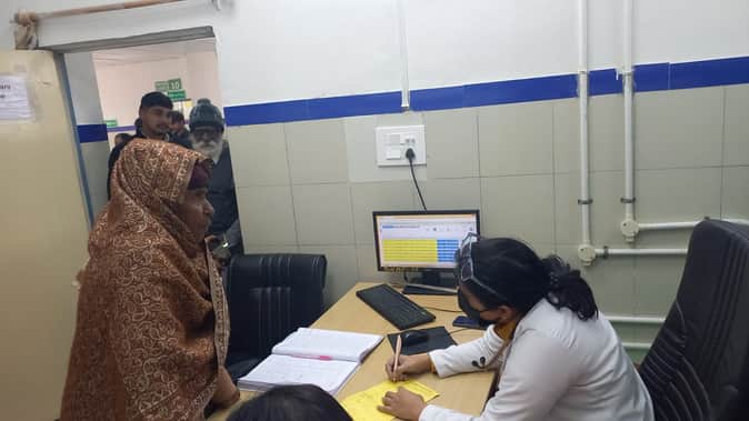 08jjrp13- सिविल अस्पताल में आने वाले मरीज से जानकारी लेती चिकित्सक। संवाद