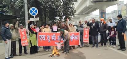फोटो-52: बहादुरगढ़ के रोहतक रोड पर अमेरिकी राष्ट्रपति का पुतला फूंकते एसयूसीआई के कार्यकर्ता। फो