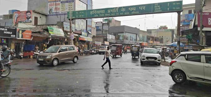 -फोटो 84 : बहादुरगढ़ में शुक्रवार को दोपहर के समय हुई बूंदाबांदी और सड़क से गुजरते लोग। संवाद