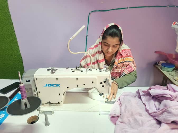 16जेएनडी17: दुकान में सिलाई करती योगिता। संवाद
