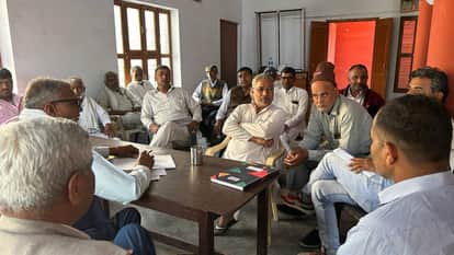 01जेएनडी20-हाउसिंग बोर्ड कॉलोनी स्थित कार्यालय में बैठक करते कार्यकर्ता। स्रोत सदस्य
