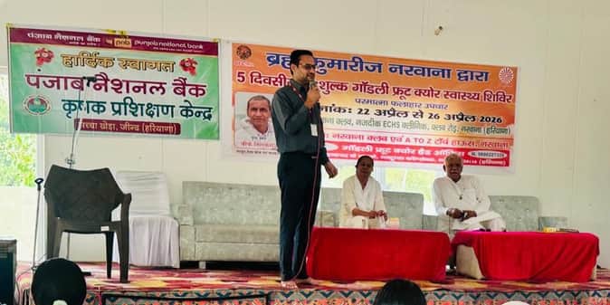 नरवाना। ब्रह्माकुमारीज द्वारा आयोजित पांच दिवसीय गोल्डी फ्रूट क्योर स्वास्थ्य शिविर के तहत लोगों को प्राकृतिक जीवनशैली अपनाने के लिए प्रेरित किया जा रहा है। कार्यक्रम में पंजाब नैशनल बैंक कृषक प्रशिक्षण केंद्र की ओर से 22 व 23 अप्रैल को दो दिवसीय विशेष प्रशिक्षण सत्र आयोजित किए गए।