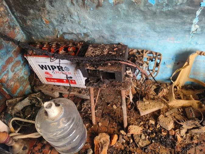 24जेएनडी22-खरेंटी गांव में आग लगने से जला सामान। स्रोत परिजन
