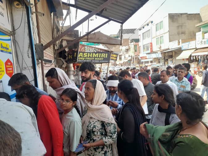 22जेएनडी38: रुपया चौक पर भारत गैस की एजेंसी के बाहर लगी भीड़। संवाद