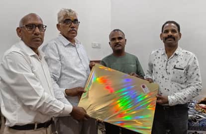 31जेएनडी14: सतीश कुमार को सम्मानित करते हुए यूनियन के सदस्य। स्रोत ग्रामीण