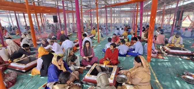23जेएनडी20: हवन यज्ञ में आहुति डालते हुए श्रद्धालु। स्रोत श्रद्धालु