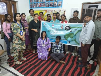 07जेएनडी08: श्री साईं वेलफेयर सोसाइटी सदस्य विश्व स्वास्थ्य दिवस मनाते हुए। स्रोत संस्था
