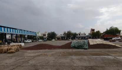 31जेएनडी10: शहर की अनाजमंडी में बूंदाबांदी में भीग रही सरसों। संवाद