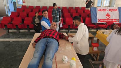 23jjrp04- राजकीय नेहरू कॉलेज में रक्तदान करता छात्र। संवाद