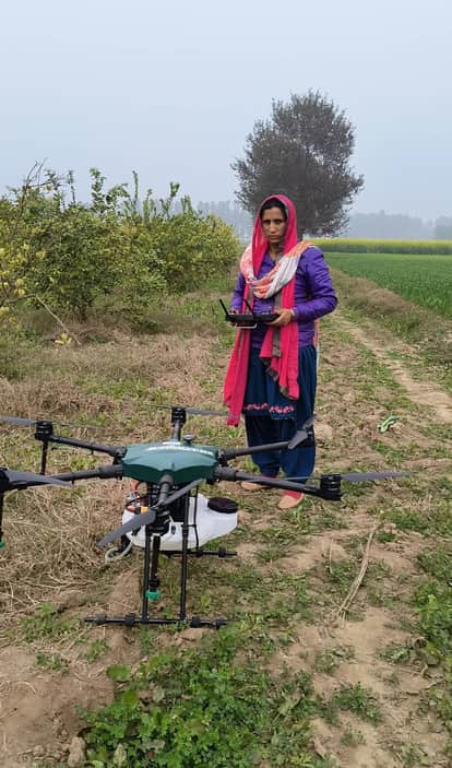 रेणू बताती हैं कि करीब तीन साल पहले 2022 में उन्होंने गुरुग्राम में ड्रोन संचालन का प्रशिक्षण लिया था। प्रशिक्षण के बाद उन्होंने खेती में ड्रोन से कीटनाशक और खाद के छिड़काव का काम शुरू किया।