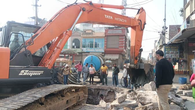 Jind News: धंसी सड़क पर तीन दिन बाद मरम्मत शुरू