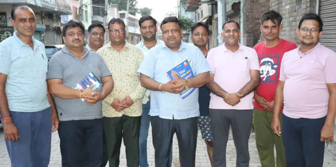 07जेएनडी04: परिचय सम्मेलन को लेकर प्रचार करते अग्रवाल समाज के प्रधान राजकुमार गोयल व अन्य पदाधि