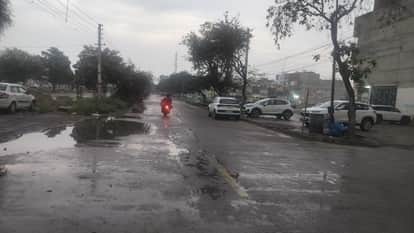 19जेएनडी34: जींद एलआईसी रोड पर शाम को सड़क पर बूंदाबांदी के बाद ठहरा पानी। संवाद
