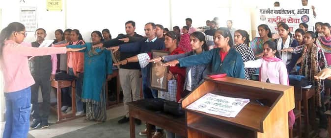 26जेएनडी36-राजकीय महाविद्यालय अलेवा में नशा मुक्त समाज का निर्माण करने की शपथ लेते शिक्षक व विद