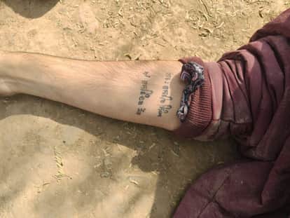 19जेएनडी25-मृतक की बाजू पर लिखे नाम। स्रोत पुलिस