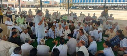 02जेएनडी35-अनाज मंडी में बैठक में मौजूद आढ़ती और किसान। स्रोत आढ़ती