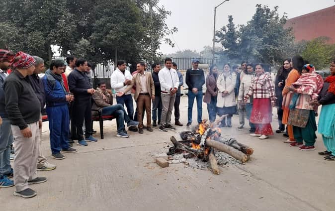14जेएनडी11: मकर संक्रांति के पर्व को मनाते हुए महाविद्यालय स्टाफ। संवाद