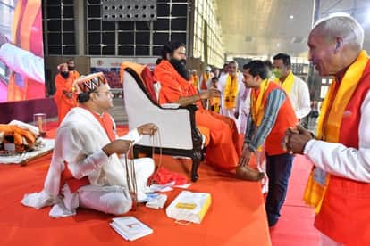 29जेएनडी29 : योग गुरू रामवेद से आशीर्वाद लेते हुए एडवोकेट सन्नी चौधरी। संवाद