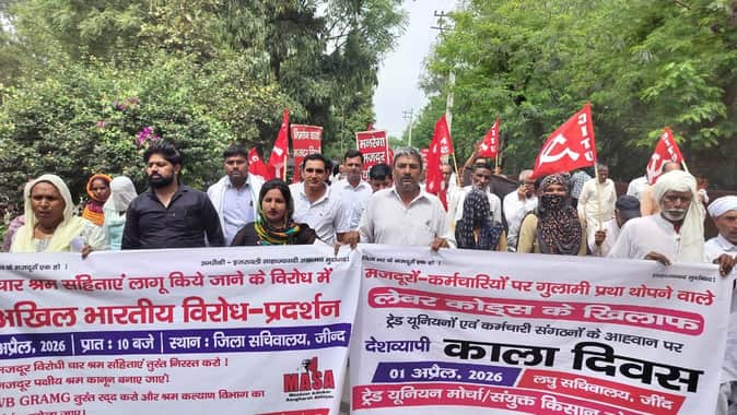 Jind News: मांगों को लेकर मजदूरों और कर्मचारियों ने किया धरना प्रदर्शन