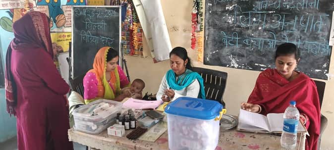 25 ढांड 01 बच्चे का टीकाकरण करते हुए एएनएम सुमन।