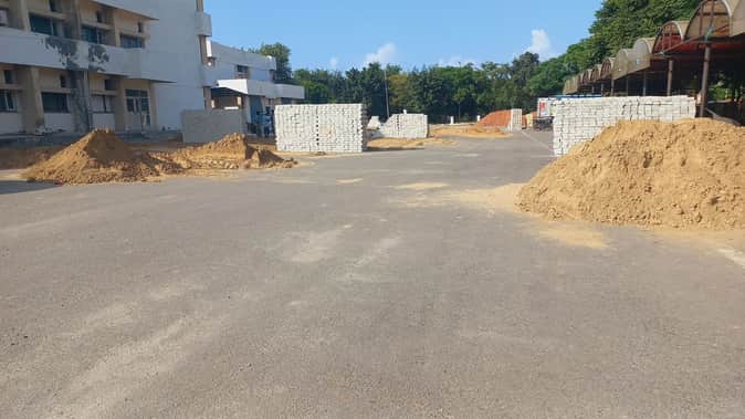 अस्पताल परिसर में सड़क पर ब्लॉक लगाने का कार्य।