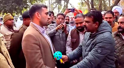 इससे पहले एसडीएम ने स्पष्ट किया कि भूमि सरकार की है और पंचायत समिति दुकानों की लंबाई बढ़ाने या न बढ़ाने के फैसले में पूरी तरह सक्षम है। इस पर विधायक देवेंद्र हंस संतुष्ट नहीं हुए और पास खड़े व्यक्ति की जेब से प्लास्टिक का झुनझुना निकालकर एसडीएम को थमाने का प्रयास किया, साथ ही कहा, “आपसे कुछ नहीं होगा। इसे पकड़िए और बजाते रहिए।” इस पर एसडीएम ने तुरंत विधायक का हाथ झटका और दूरी बनाए रखी।