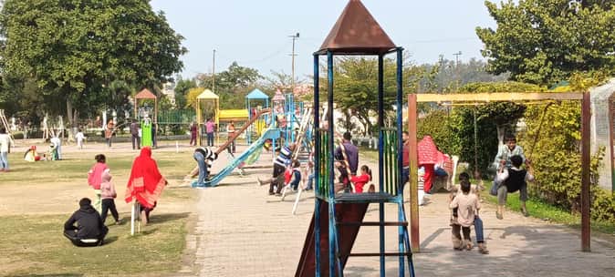गुनगुनी धूप निकलने पर कैथल के जवाहर पार्क में झूला झूलते बच्चे।