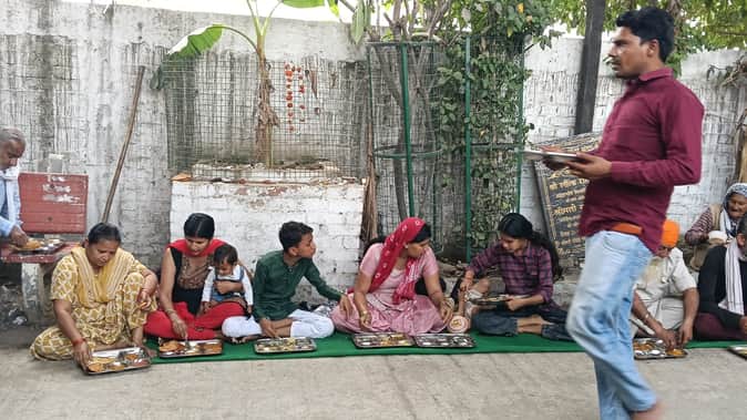कैथल के कमेटी चौक पर स्थित भाई उदय सिंह किले में राम नवमी के मौके पर आयोजित भंडारे में प्रसाद