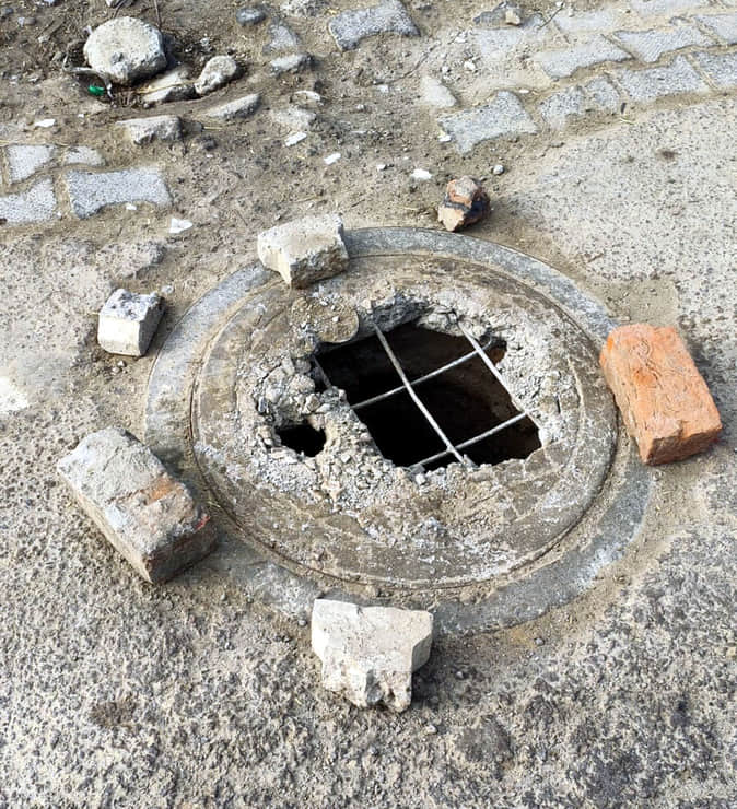 14केएलटी3: टूटा सीवरेज मेनहोल का ढक्कन