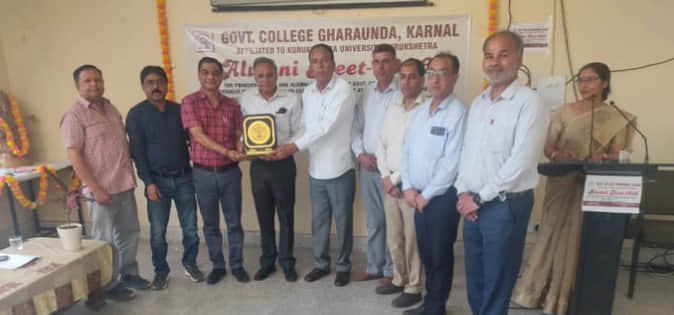 राजकीय महाविद्यालय घरौंडा में आयोजित पूर्व छात्र मिलन समारोह में उपस्थित पूर्व छात्र। स्वयं