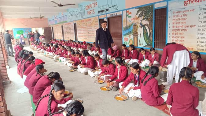 भंडारे का प्रसाद ग्रहण करती छात्राएं। संस्थान