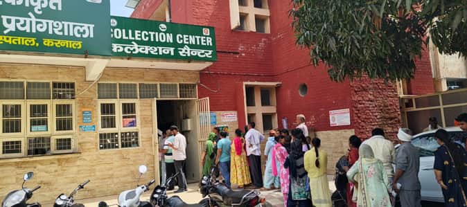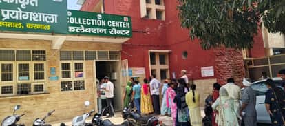 जिला नागरिक अस्पताल की लैब के बाहर रक्त जांच कराने आए लोगों की लगी कतार। अमर उजाला