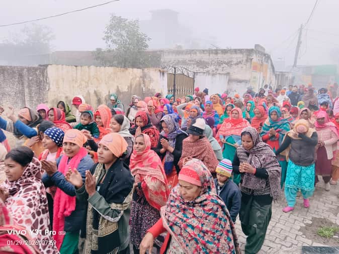 गांव प्योंत में आयोजित प्रभात फेरी में शामिल श्रद्धालु। स्वयं