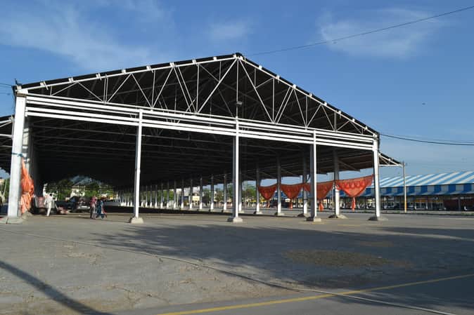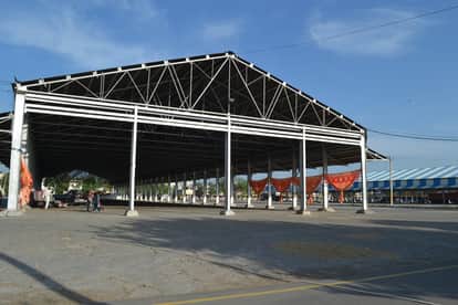 नई अनाज मंडी में गेहूं रखने के लिए बने शैड़। संवाद