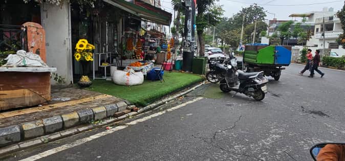 सेक्टर 12 के फुटपाथ पर दुकान वाले ने रखा सामना संवाद